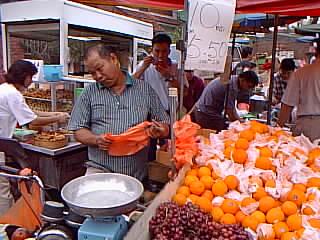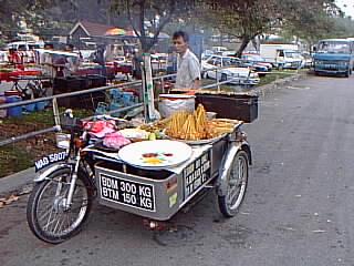 マレーシア風ヤキトリ?のサテー(SATE)。これ結構いけますよ。串刺しにした山羊や鶏なんかを炭火で焼いてピーナッツクリームを付けて食べる。