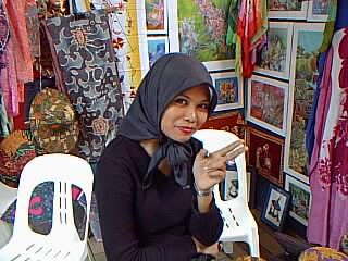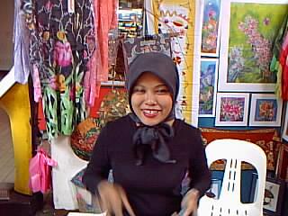 土産物を物色していると気になるおねーちゃんが。バティックグッズを売られておりまして、友人は現地の言葉でさっそく価格交渉。 話しているとなんか楽しいおねーちゃんでした。